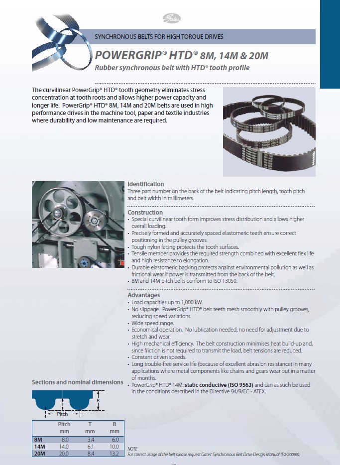 - PowerGrip® HTD® 14M: ISO 9563'e göre statik iletken; Direktif 2014/34/EU-ATEX uyumludur.